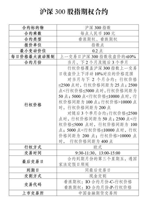 中金所的沪深300股指期权的合约具体情况如下: