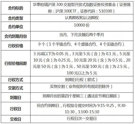 上交所沪深300ETF期权的合约具体情况如下: