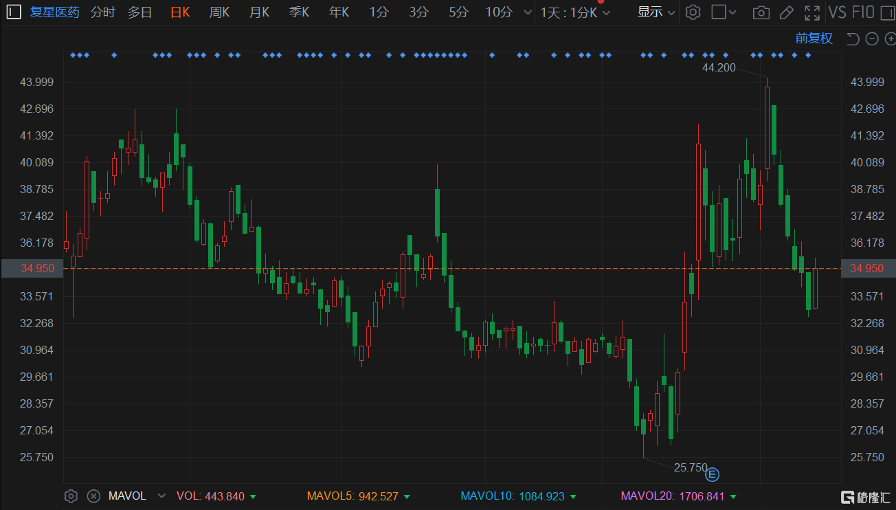 格隆匯4月14日丨此前錄得6連跌的復星醫藥(2196.HK)反彈逾6%,報35.1港元,暫成交1.5%,總市值899.6億港元。公司控股子公司復星診斷自主研發的新型冠狀病毒抗原檢測試劑盒(膠體金法)於4月13日(昨日)獲得國家藥監局頒發的《中華人民共和國醫療器械註冊證(體外診斷試劑)》。本次獲批上市將有利於該產品在中國境內(不包括港澳臺,下同)的市場佈局,並可服務於新冠疫情防控需要。