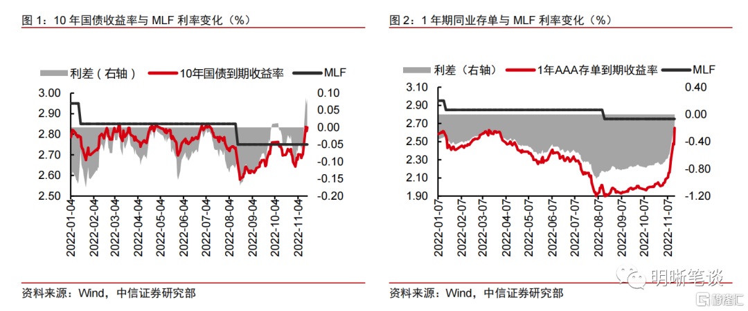 2022年11月16日,10年國債收益率上升至2.83%, 11月10日以來上行超過13bps,而1年期AAA級同業存單收益率單日上行18bps,我們認爲,昨天債市的調整除了基本面的原因之外,還可能與銀行表內、銀行理財、基金交易配置的贖回操作因素有一定關係,負反饋效應短期主導了市場。贖回潮如何形成?後續又將如何演繹?本文將做詳細分析。