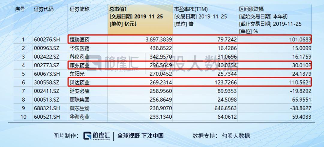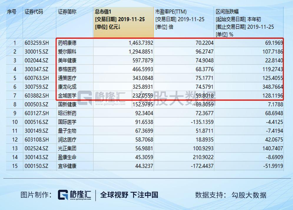 19年的热词“核心资产”在医药行业的映射除了恒瑞等创新药和龙头、疫苗血制品等生物制品之外,就是一堆估值上天的医疗服务了。无论是CRO、还是连锁医疗服务,都因为有比较明晰的发展前景、比较确定的短期业绩而被抱团,股价涨起来必然就是估值拔起来,这里面估值最低的金域医学的PE是60倍...