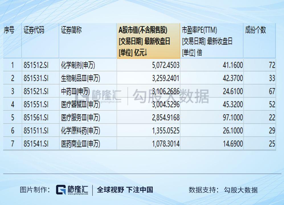 所以,我们需要先理解一下医药行业的构成:按照市场最常用的分类方法,医药行业可以分为化学制剂等7个子行业。