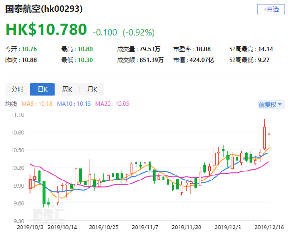 摩通:首予国泰(0293.HK)“减持”评级 目标价9.3港元