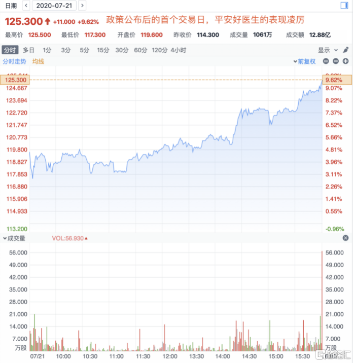 这两个方面的重磅利好,或会引发市场对公司成长活力有了较大幅提升的评判。截至2020年7月22日,平安好医生最高价创下每股127.4港元,较7月20日收市价累计上涨约11.5%,最高总市值超过1300亿港元。