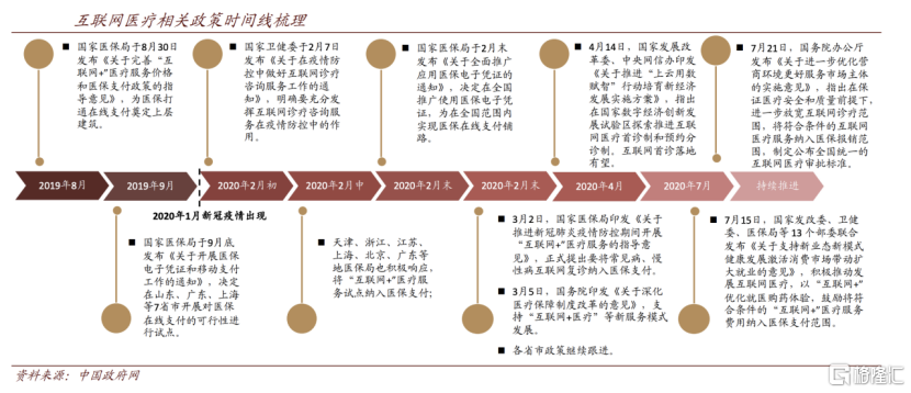 国办政策的重要性在于有望显著加速后期各类具体政策细则的制定,加上疫情之后,国家医保局、卫健委等相关部门已多次发文推动并规范互联网医疗的发展,未来的政策监管的边界明晰后,对行业参与者的战略布局将起到十分重要的方向性指引。随着相关顾虑消除,确定性增强,预期行业参与者的战略布局将更加坚定,对产业的投资规模亦加速增长 。