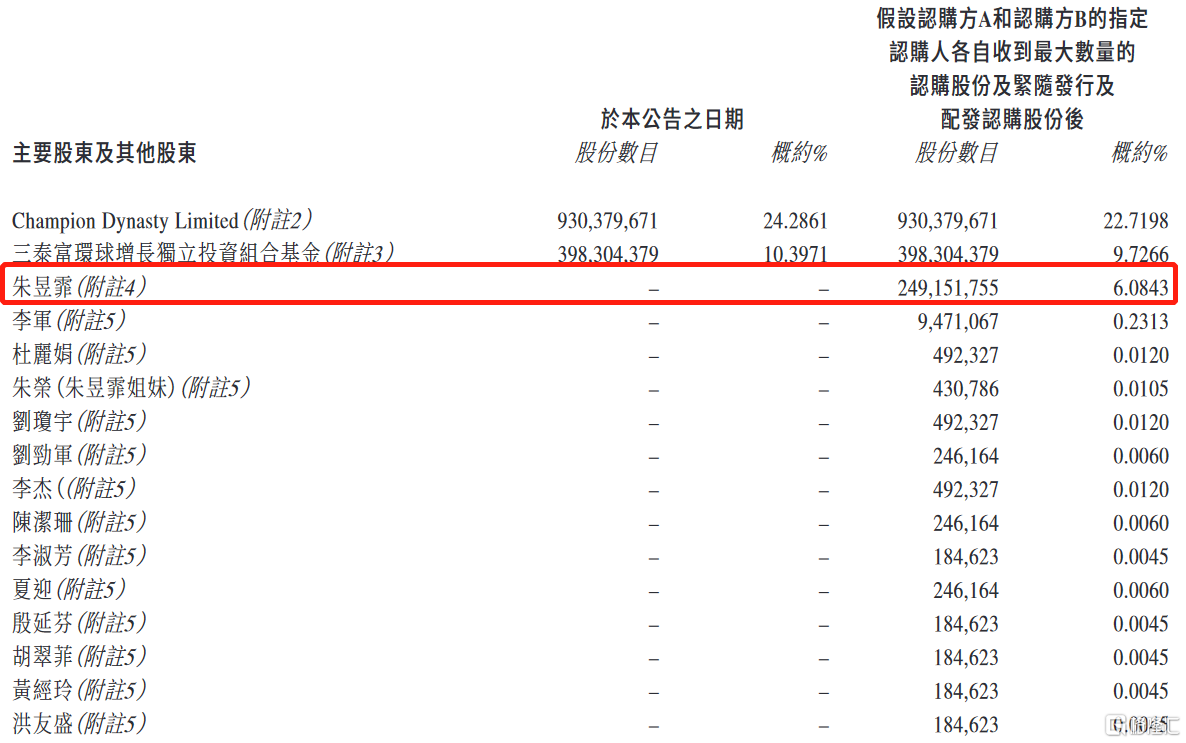 值得注意的是,发行给朱昱霏合计249,151,755股股份包括(i)作为认购方A的第一批认购股份;(ii)认购人B指定并经公司根据第一份认购协议同意发行给认购人B的部分股份。朱昱霏乃公司执行董事、联席主席。