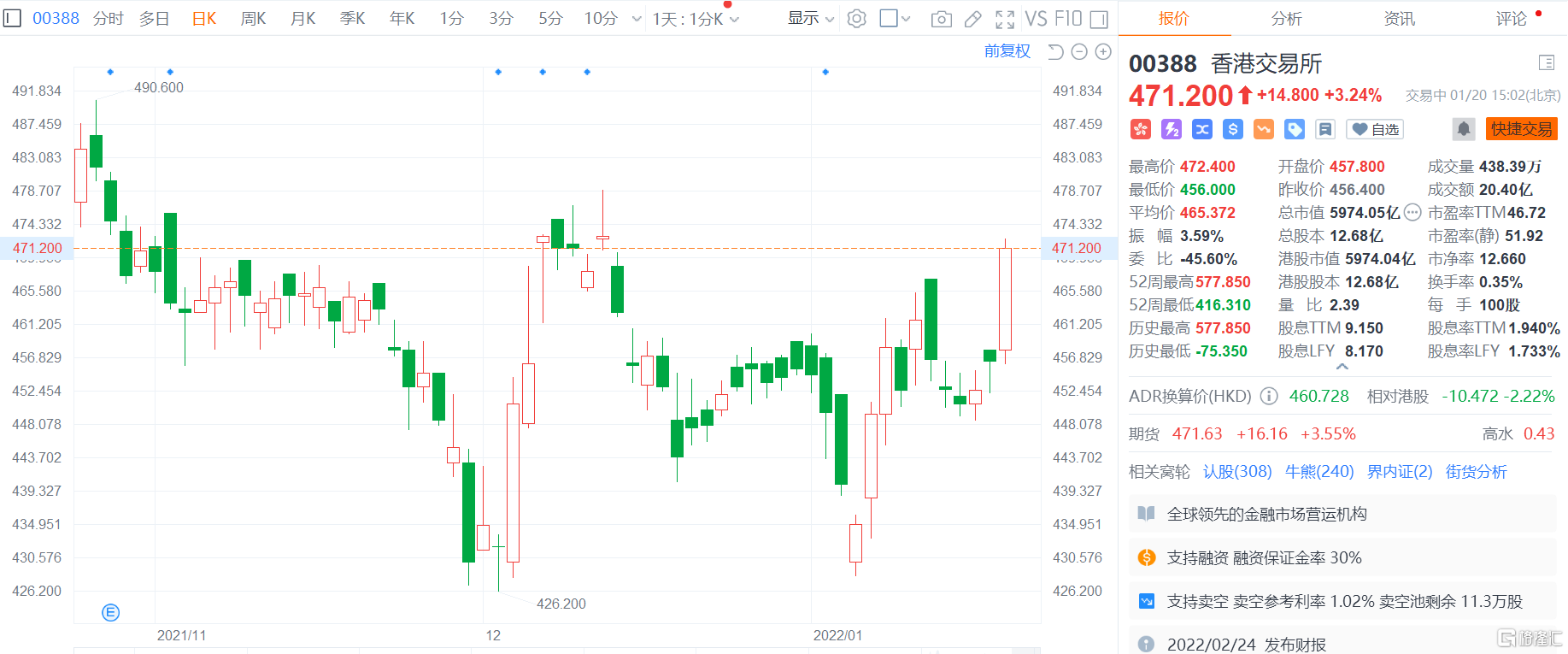 格隆汇1月20日丨港交所涨逾3%,报471.2港元创逾一个月新高,总市值5974亿港元。1月17日,属于SPAC的Aquila Acquisition Corporation向港交所递交上市申请书,Aquila的发起人为招银国际资产管理有限公司及AAC Mgmt Holding Ltd。据悉,这也是港交所首家SPAC。也将是继同股不同权(WVR)股份、生物科技股及二次上市中概股后,港交所迎来的另一波IPO浪潮。野村发表最新报告称,内地企业寻求来港上市需求强劲,加上去年10月成功推出MSCI中国A50互联互通指数之期货合约等,对港交所长期展望保持不变。 将港交所评级由“中性”上调至“买入”,目标价由485港元调升至531.1港元。