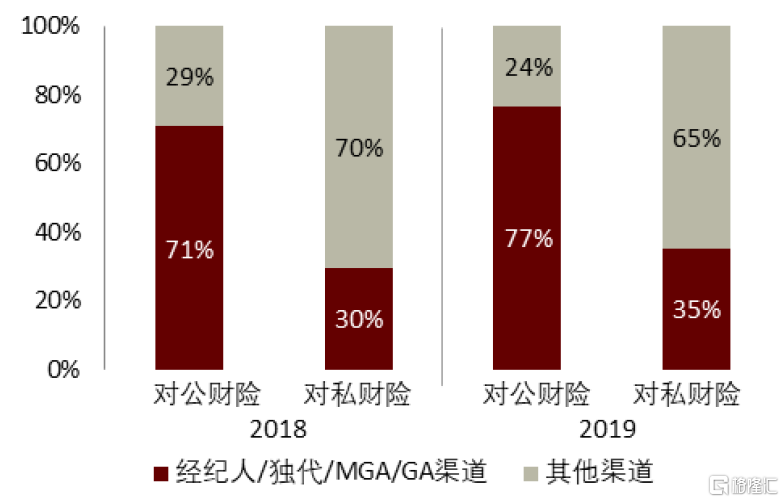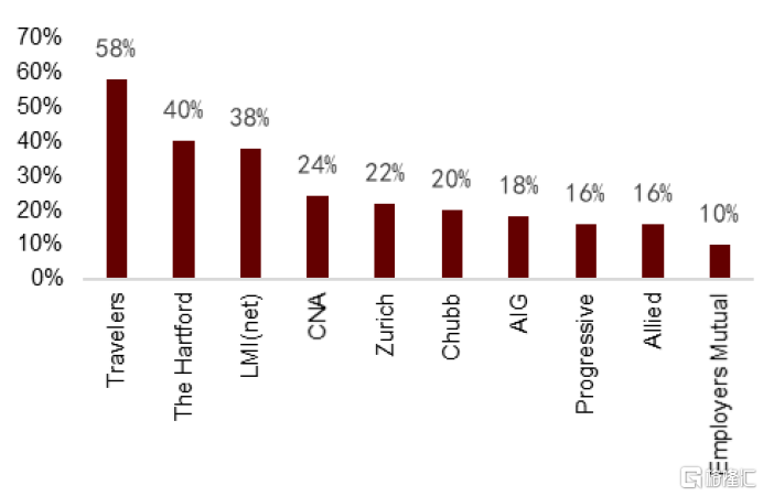 資料來源:Insurance Information Institute,中金公司研究部注:MGA/GA指managed general agents,以批發業務為主,主要幫助保險經紀及代理人進入市場