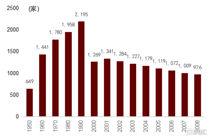 圖表10:1950-1990年人身險流量紅利年代,美國壽險公司數量快速增長
