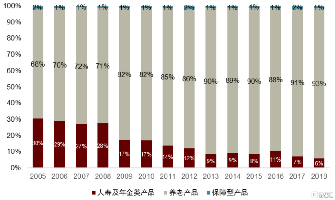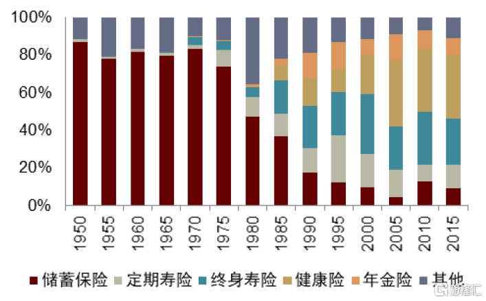 ►1974年《美國僱員退休收入保障法案》推行賬户分離制度,税收優惠和賬户獨立運作推動美國保險市場開啟投資型產品的繁榮時期,變額年金、指數年金等新產品開始湧現,且多數產品帶有附加險,民眾需求向複雜投資型產品遷移。