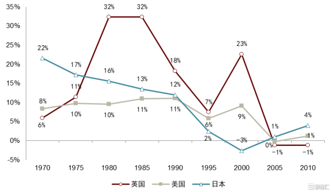 圖表19:英、日、美在1990年前後結束供給端主導的流量紅利時代,渠道轉型也繼而開啟(總保費口徑)