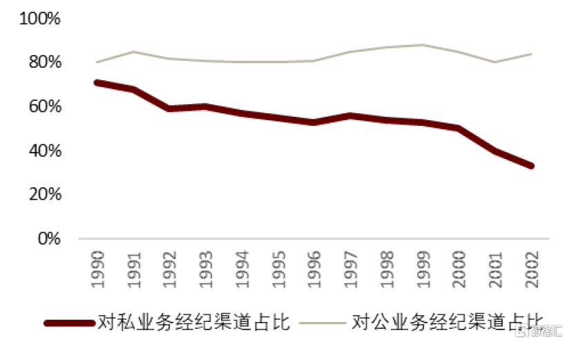 進入70年代後,獨立代理人份額開始上升。我們認為主要由於客户需求發生明顯遷移,供需博弈向需求方傾斜: