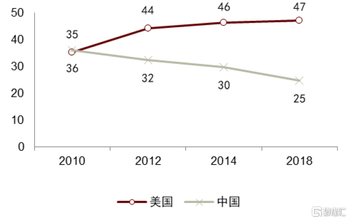 圖表1:美國對公財險業務中經紀渠道淨保費收入佔比約為70%,優勢明顯
