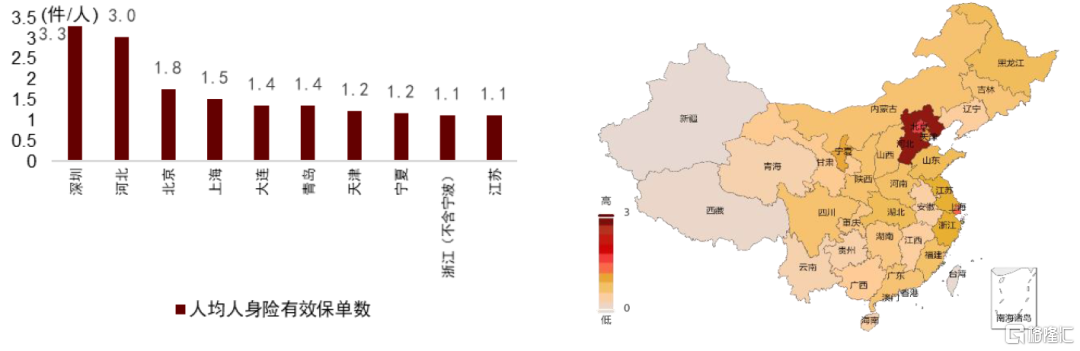 注:左圖中深圳、大連、青島為銀保監會計劃單列市。香港、台灣、澳門數據未統計