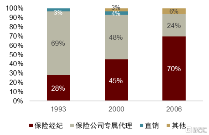 ►外部原因:英國於1985年頒佈了英國投資者保護白皮書,確立了新的投資者保護框架,核心思想為推動客户利益最大化。在該框架下,保險代理人和保險經紀人均需要提供並記錄他們建議某類特定人身險產品的原因,而經紀人由於可代理多家公司產品,其推薦理由更能得到客户信任,進一步推動經紀渠道走強。