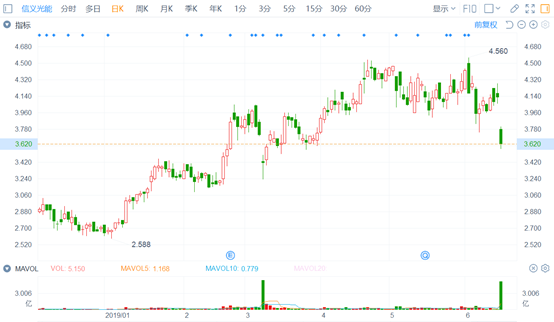 鉴于海外和国内市场对于光伏的需求同时上升,作为上游的光伏玻璃或存供给缺口,驱动行业景气度继续回升。在这个预期下,光伏的上下游上市公司二级市场的股价也开始有所表示,信义光能的股价从2018年第四季度开始一路震荡上扬。截至6月17日收盘,信义光能累涨52.51%,即便大股东折价9.2%,套现金额也令人咋舌。