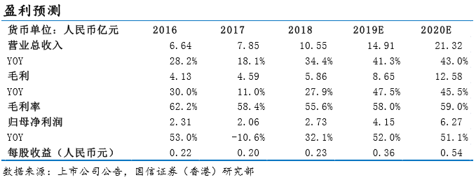 我们预测公司 2019 年归母净利润约 4.15 亿元人民币,较 2018 年将实现 50%以上增长。同时预测 2020 年公司收入及净利润将继续保持高速增长。 主要理由在于:公司未来两年投运项目产能将迅速增加,从而带动公司 收入及盈利持续高增。