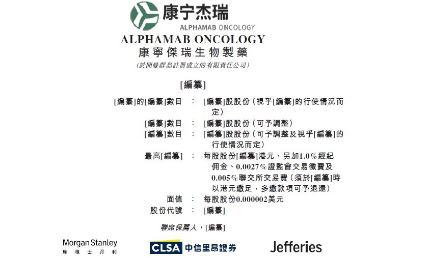 7月15日晚间,香港交易所在发行人资料中披露了康宁杰瑞生物制药(简称“康宁杰瑞”)的上市申请版本(第一次呈交),联席保荐人为摩根士丹利、中信里昂证券及Jefferies。