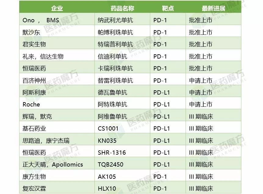 国内已经上市及接近上市的PD-1/PD-L1产品
