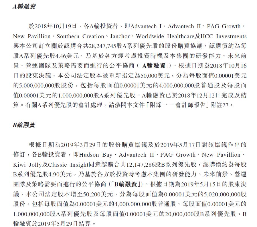 股本信息方面:A轮融资前期(2018/10/16),其法定股本被重新指定為50,000美元。B轮融资完成后(2019/5/15),该公司法定股本增至50,200美元。简单地理解,就是B轮增资约6000万美元后,股本扩大了0.4%。
