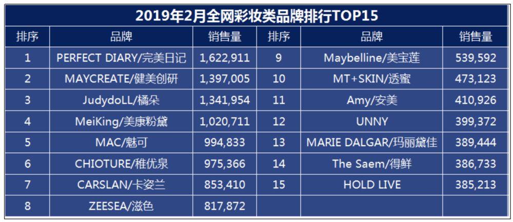 2019年2月淘宝及天猫彩妆类品牌排行TOP15