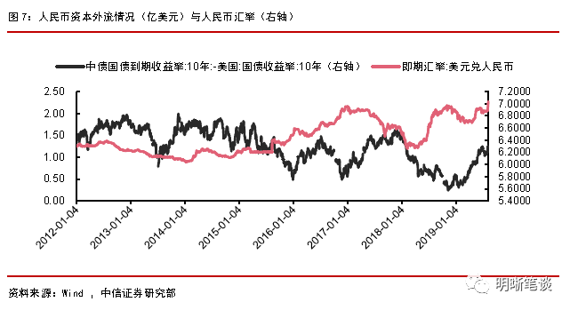 结论:总体而言,未来人民币汇率可能围绕7为中枢交易。从几个影响因素来看,虽然经常项目有一定压力,但资本流动总体平稳,购买力平价和经济周期总体有趋同趋势,未来进一步压制汇率的动力不大。另外,人民币汇率短期内可能不会有进一步的贬值走势,升值与贬值的大方向还需要进一步观测贸易摩擦的进程。最后,中美利差当前也比较宽,这有助于避免人民币汇率进一步贬值。在央行就汇率在官网上的沟通交流也提到这一点,其表示“特别是在目前美欧等发达经济体货币政策转向宽松的背景下,中国是主要经济体中唯一的货币政策保持常态的国家,人民币资产的估值仍然偏低”。