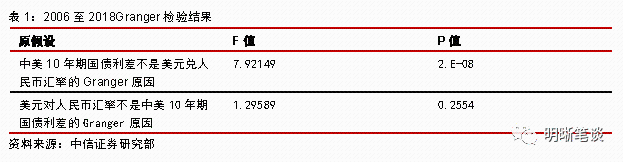 探究汇率与利率的因果关系:从统计学角度,利率可作为影响汇率的原因,而没有充足的证据表明汇率可作为利率的重要影响因素。用2006年年初至2018年年末中美利差与美元对人民币汇率数据通过Granger检验探究二者的因果关系,得到的结果是美元兑人民币汇率并非中美10年期国债利差的格兰杰原因,而中美10年期国债利差是美元兑人民币汇率的格兰杰原因。因此从统计角度利率为因而汇率是为结果,汇率可能并非利率的重要影响因素。