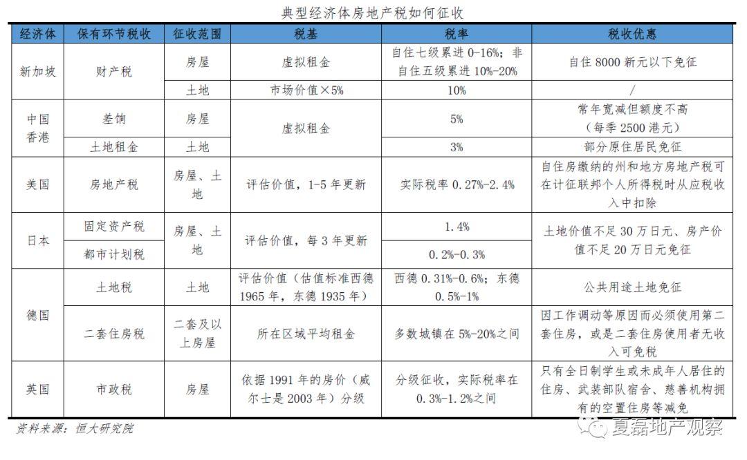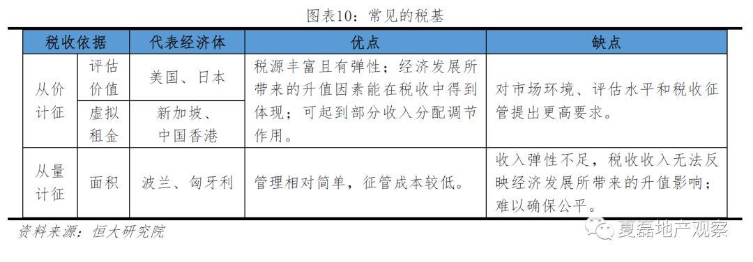 以评估价值为征税基础的经济体有美国、日本、德国和英国。区别在于美国评估价值与市场价值接近,日本评估价值小于市场价值,德国和英国评估标准较早,评估价值远小于市场价值。