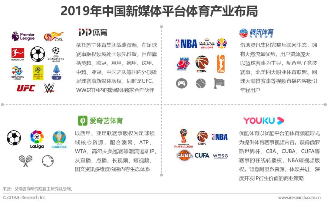 在2015年国家出台《中国足球改革发展总体方案》明确要求建立“足球赛事转播权市场竞争机制”后,各方社会资本开始进入转播版权市场角力,天价转播权频出,版权之争愈发激烈。中国体育新媒体平台经过一番激烈竞争后,PP体育由体奥动力购得了中超赛事新媒体版权,又成功将未来3-5年的英超、德甲、意甲、法甲等欧洲主流联赛的赛事版权纳入囊中,在足球版权领域处于明显领先位置;爱奇艺体育拥有新赛季西甲联赛的转播权以及2018-2022年欧足联国家队系列赛事的新媒体版权。