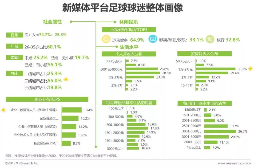 用户画像:当代新媒体平台球迷拥有青年男性为主、收入水平中高、社会精英的属性特征。