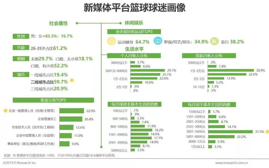 26-35岁、男性为主体、收入中高水平的篮球球迷人群