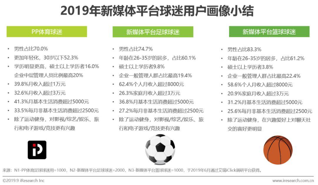 青年男性为主、收入水平中高社会的社会精英形象,其中PP体育球迷是典型代表