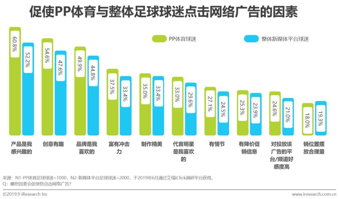 “产品是我感兴趣的”、“创意有趣”和“品牌是我喜欢的”最容易促使球迷点击网络广告。