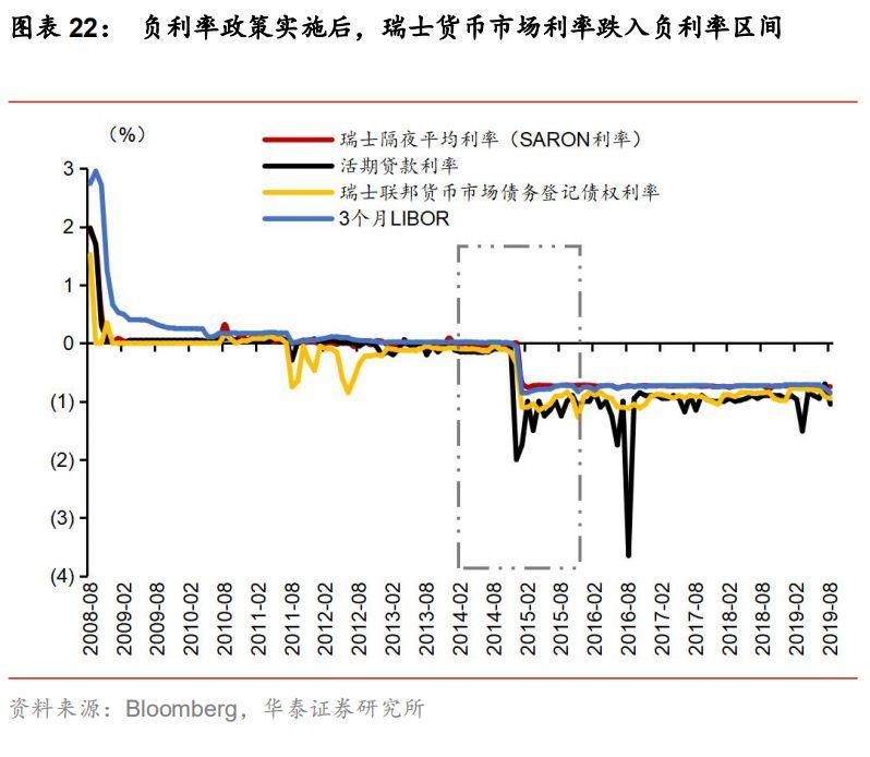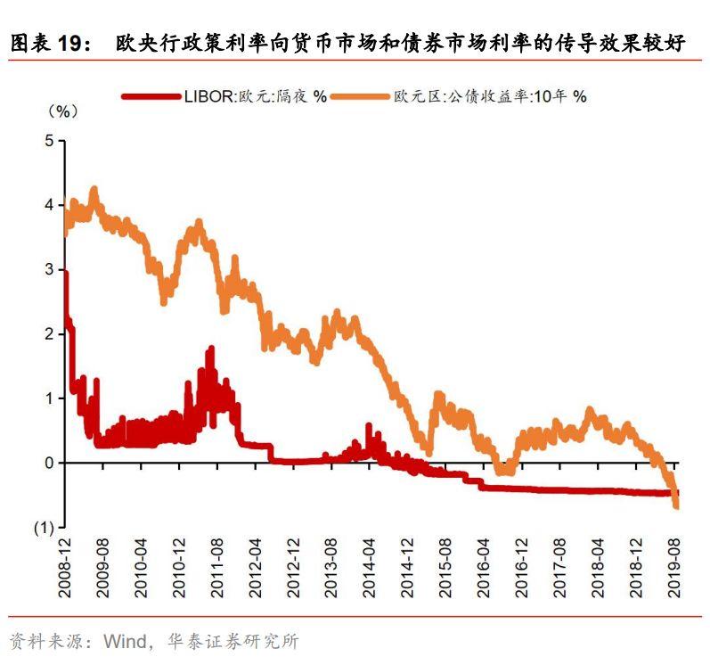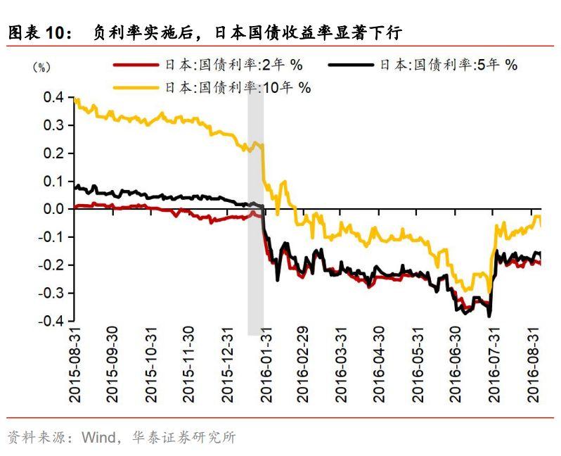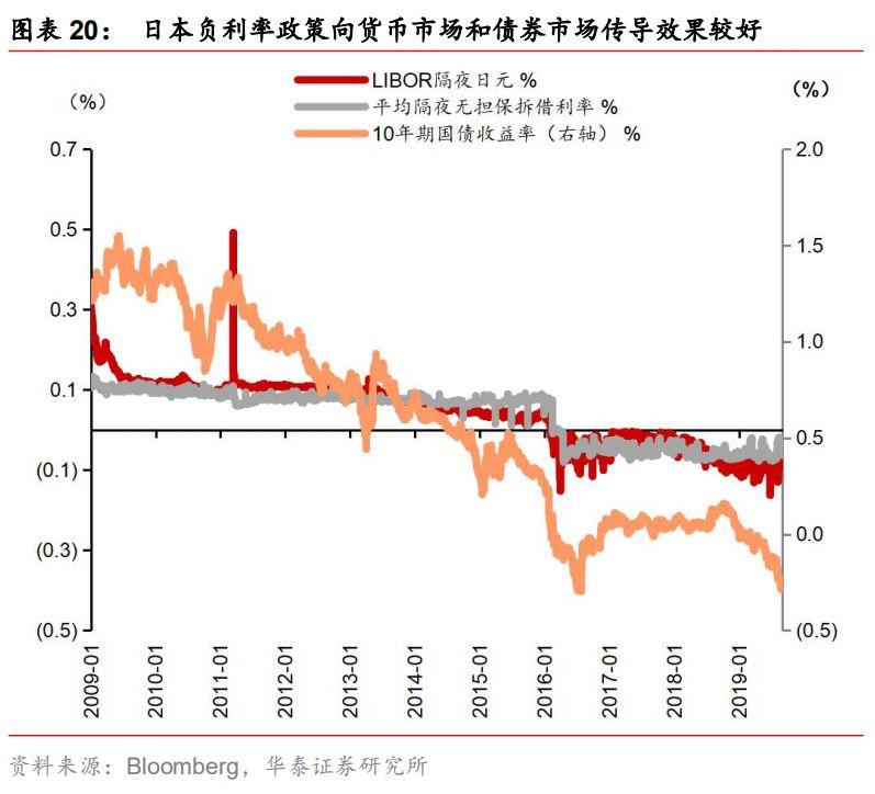 从日本、欧元区及其成员国经验来看,负利率政策对广谱利率有重要作用。我们在9月6日外发的《负利率政策是如何从央行开始传导的——渐行渐近的负利率时代系列报告二》中,对负利率政策影响广谱利率进行细致研究,根据日本、欧元区及其成员国经验来看,负利率政策对广谱利率有较明显影响,但作用效果不完全一致。央行通过调整超额存款准备金利率、商业银行在央行的存款利率等实施负利率,“迫使”商业银行将更多资金投放在同业、信贷等方面而非存在央行,银行间资金供给的增多带动货币市场利率下行。