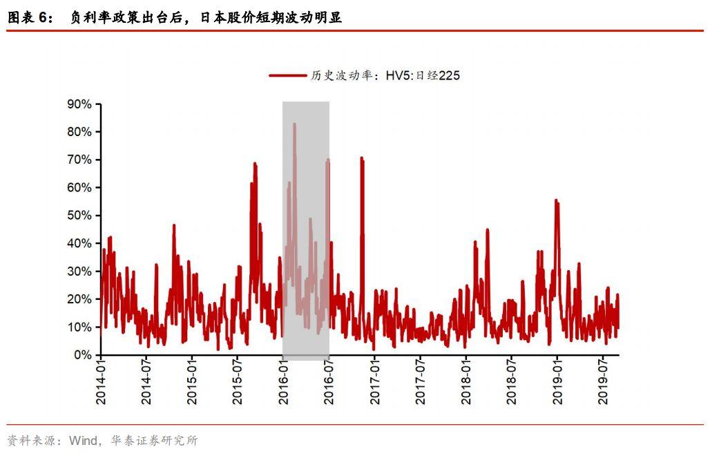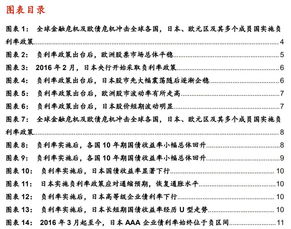根据货币政策的传导机制和欧洲、日本等地区负利率政策的实践经验,我们认为,负利率政策出台对股票市场的影响在短期表现为偏正向。负利率政策直接反映了市场对未来经济增长的悲观预期,会直接作用于货币市场和债券市场。但对于股票市场而言,负利率造成的低利率环境使得投资者风险偏好提高,股票市场企业受益于流动性宽松,相应股票指数并未出现大幅下跌情况,甚至表现为高位企稳。但负利率导致无风险利率为负后,股票市场定价问题开始显现,股价波动也有所加剧。