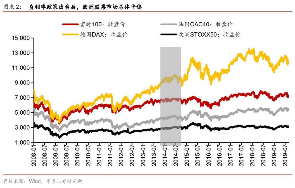 2014年欧洲央行负利率政策出台后,股票市场短期出现震荡,随后逐步企稳,整体影响短期偏正向,没有出现股市大幅下跌的情况。