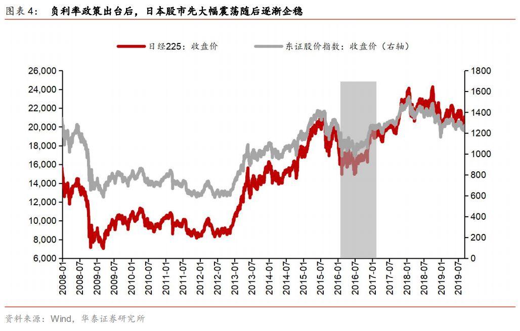 2016年初日本央行实施负利率政策后,日本股市短期出现大幅震荡,但随着流动性红利的逐渐释放,股市逐渐企稳,并在下半年进入上行区间。