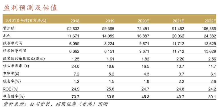 东北省份其他地区增长趋势相若 天然气需求增长趋势亦延伸到东北省份的其他地区:辽宁和吉林,该两省 加上黑龙江的天然气消费水平预计于2025年将达到245亿立方米,相比 2018年为142亿立方米(复合年增长率为8%),预计中国燃气将占当中 37%的份额,意味着与19财年集团的零售天然气销量相比等于其天然气销 量增长的62%。重申买入评级,预测维持不变。
