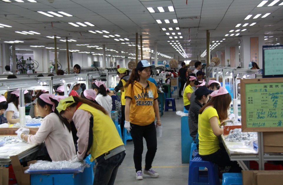 对应的工人工作效率也有要求:每天保守工作10小时,在流水线前重复着同一个动作,20秒完成一块电路板的测试,一分钟装7个静电袋,3秒钟处理完一个手机后壳。