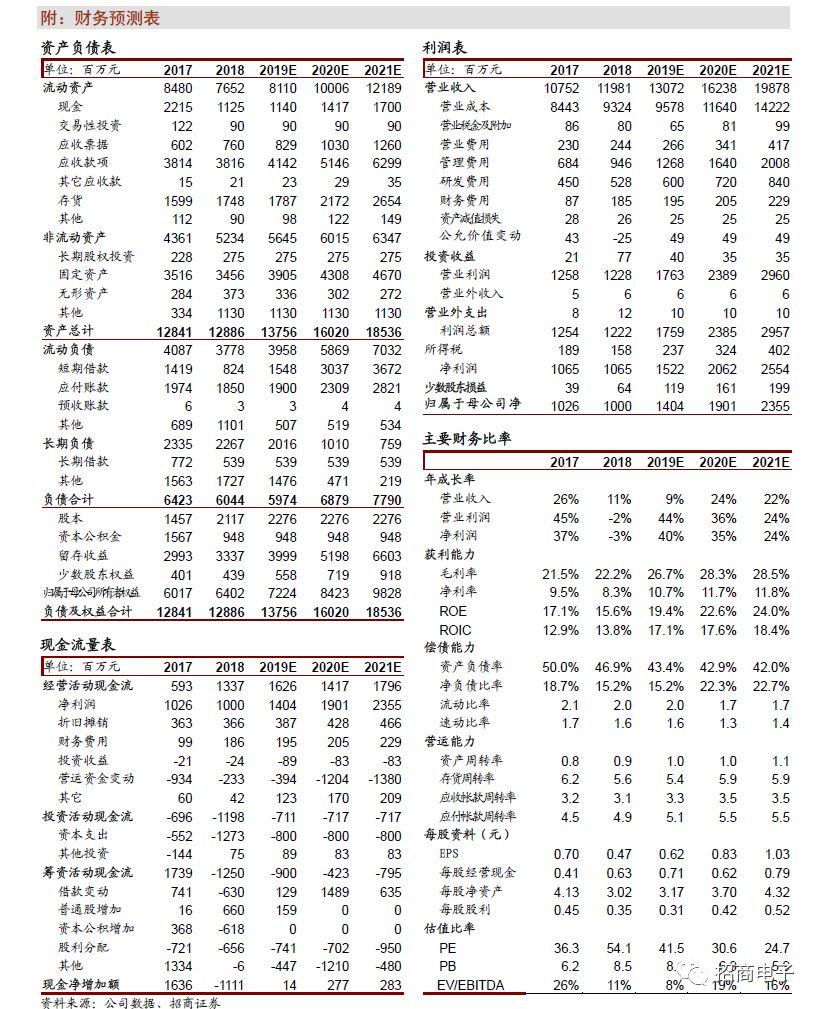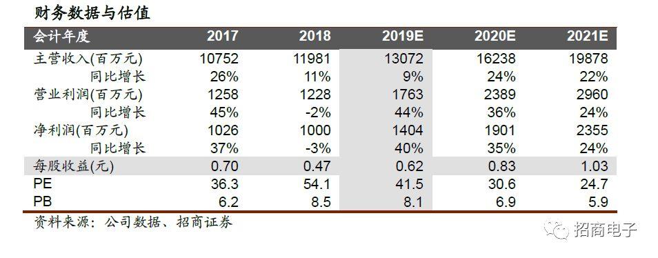 上调盈利预测和目标价,维持强推。我们认为通信业务成为公司新的核心驱动力,公司进入产品和客户结构优化、成长性加强的新一轮发展期。预估2019-2021年营收130/162/198亿,上调归母净利润至14/19/23亿,对应EPS 为0.62/0.83/1.03元,对应当前股价PE为41.5/30.6/24.7倍。我们认为今明业绩还有持续上修弹性,维持“强烈推荐-A”,上调目标价至30元。