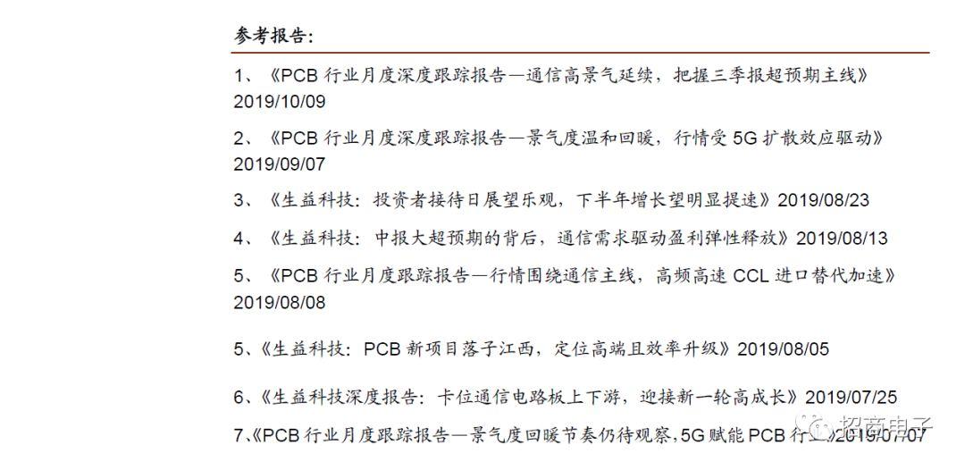 Q4及明年望延续高成长。18Q4-19Q1业绩基数较低,而19Q3及往后公司处在通信电路板上下游业务放量期,预计单季度利润同比将保持高增长。各业务方面,高频覆铜板Q4交货延续向上爬升趋势,目前该类产品在纯内资供应体系中还是稀缺品,较考验厂商大规模稳定供应能力,生益将继续限售该产品进口替代放量期的较好利润;高速覆铜板亦受益于通信高层板需求的放量和服务器交换机市场的拓展,产能和产出不断提升;传统覆铜板业务价格在Q3末整体回升约1-3%,其涨价盈利弹性将集中在Q4体现,考虑19H1价格处在下调期,即使后续不再涨价,通信挤压产能紧缺下明年产品价格望同比提升,且潜在的继续涨价预期也带来利润弹性;PCB业务生益电子是未来1-2年高端产能扩张最迅速的企业之一,且在核心客户处份额处在提升状态,为公司业绩增长另一引擎。短期受制产能环比增速受限,后续总额约7亿元的东城三期、技改项目和江西项目投放后增速有望加快。最后,Q3多扣的所得税因研发加计扣除将在Q4回归,对Q4盈利形成正面贡献。我们Q4及明年业绩延续高成长保持信心。