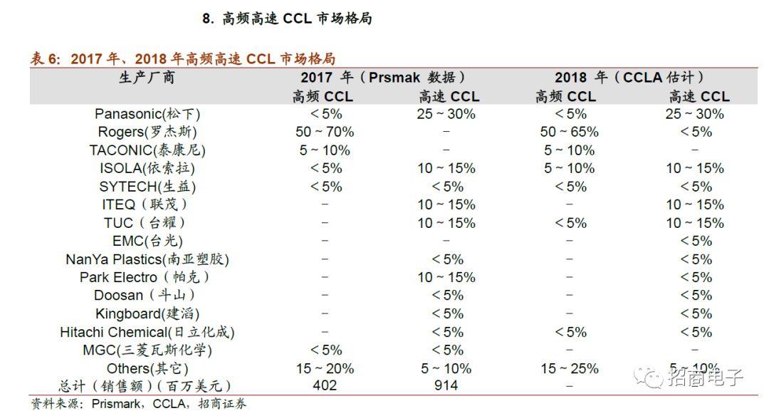 长期看,公司望逐步发展为中高端电子电路基材供应商。除高频外,高速覆铜板是更长赛道,M4级别以上2018年全球市场约10亿美金且在快速增长,设备和终端基材都在向高速化发展,未来行业高速产能将处于偏紧的供应状态。近期松下郡山工厂因水灾停产等事件也隐含了台资和外资半垄断市场出现松动的可能。此外,公司在高端FCCL基材、高端汽车板基材、封装基板基材等均有量产布局,长期看公司高端业务占比将持续提高,看好公司逐步发展为全品类中高端电子电子基材供应商。