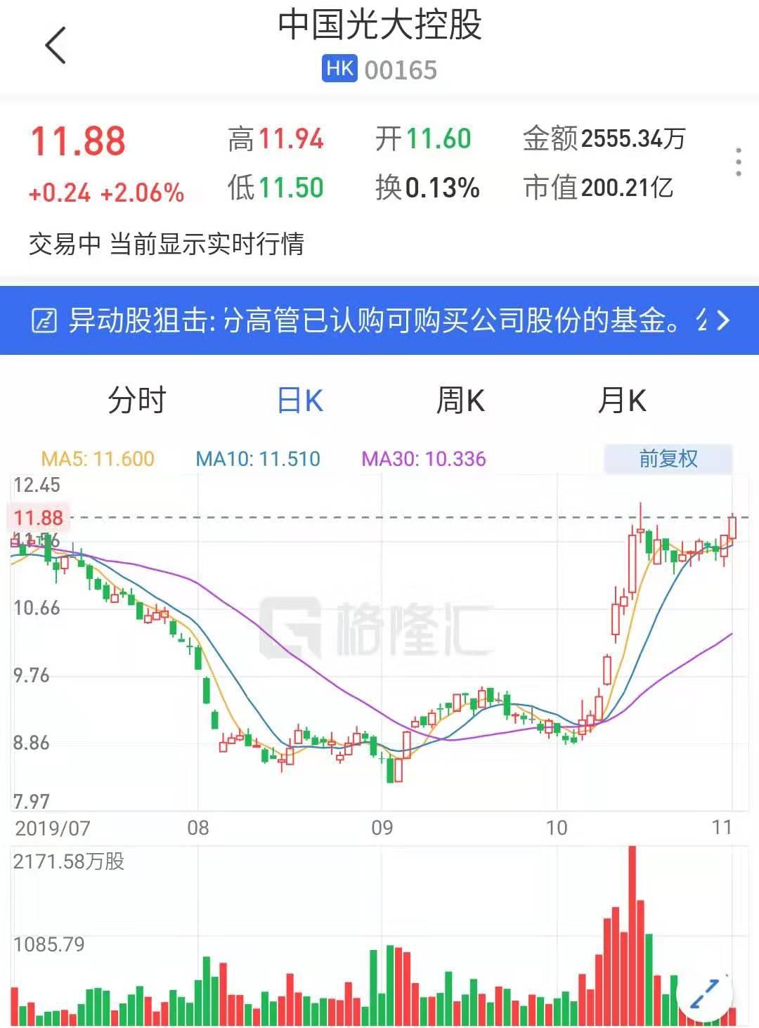中国光大控股(0165.HK)直线拉升涨超2% 部分高管已认购可购买公司股份的基金