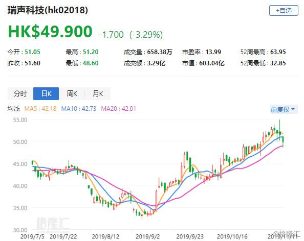 野村:升瑞声(2018.HK)目标价至53.3港元 评级“中性”