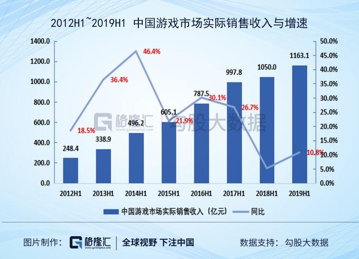 从2018年底版号恢复开始,国内游戏市场正在稳步复苏。根据伽马数据提供的数据,2019年上半年,国内游戏市场实际销售收入为1163.1亿元,同比增长10.8%,增速较前一年明显回升。