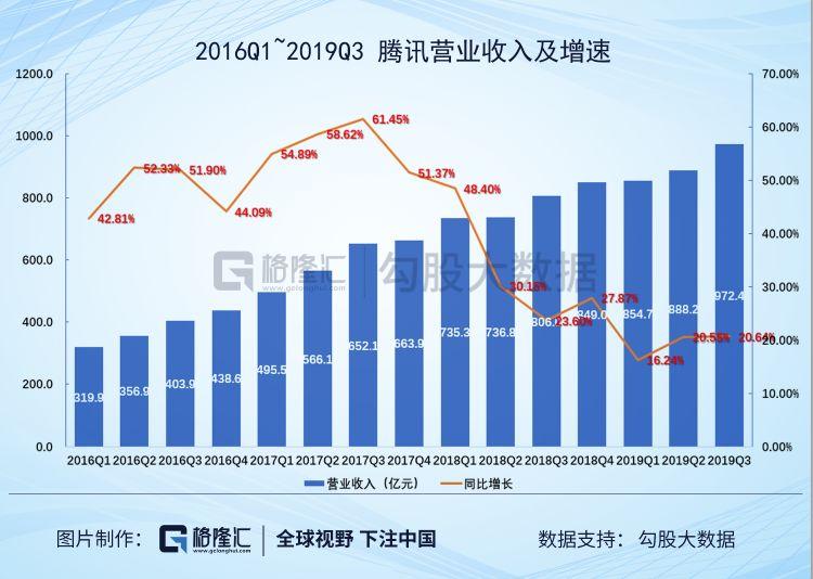 腾讯第三季度实现营收972.36亿元,同比增长21%,营收增速继续保持在20%以上。