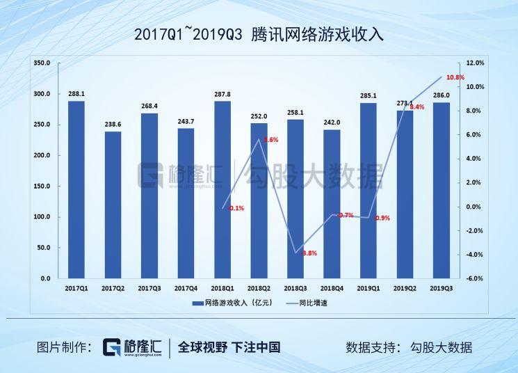 腾讯Q3网络游戏收入286亿元,同比增长11%。从趋势上可以看到,腾讯的网络游戏业务增速一直在回升。