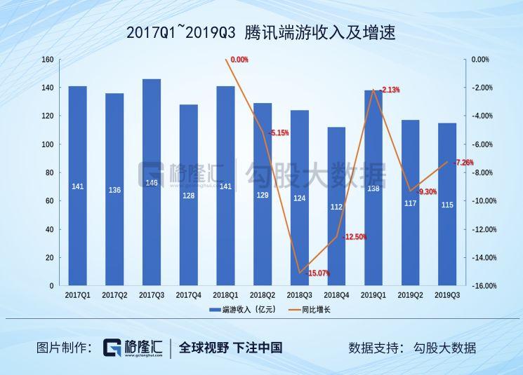 手游仍然是增速最快的板块,2019H1手游市场整体增速回升到18.8%,而端游仍然保持低速,增速在2.3%。把行业增速映射到腾讯的分业务增速上,也基本符合这样的规律。腾讯的端游收入近几个季度略有下滑但总体平稳,因为其重心是放在手游上。