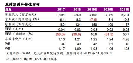 盈利预测、估值与评级:鉴于公司下半年产能利用率提升驱动业绩改善超预期,5G时代成熟平台效益有望继续释放,上调19-21年净利润预测46%/121%/54%至1.58/1.09/1.67亿美元。5G时代国产替代趋势加速兑现,14nm及以下先进节点放量叠加成熟节点需求维持紧俏有望驱动公司收入端重回健康增长轨道,然而受14nm折旧压力影响,盈利能力存在波动可能,给予20年1.2倍PB,上调目标价至12元港币,维持“增持”评级。