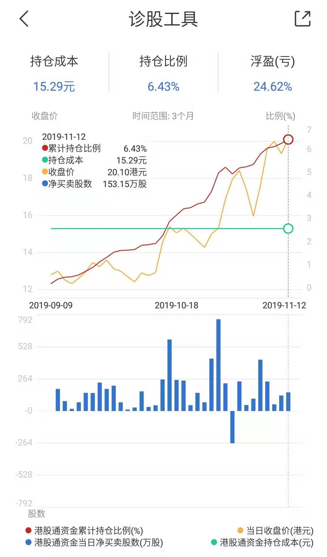 该股9月份被纳入港股通,截至目前约2个月,南下资金一路增持至最新的6.43%,自纳入以来股价累涨近60%。